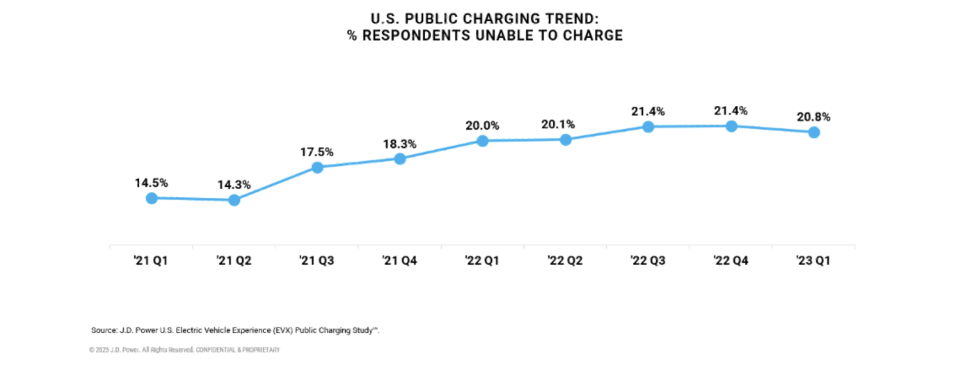 People report EV charging infrastructure reliability as one of the main reasons they aren’t willing to purchase an EV. According to JD Power, 20% of respondents to a recent survey reported issues with public charging infrastructure. But this survey is different from the reality people see.