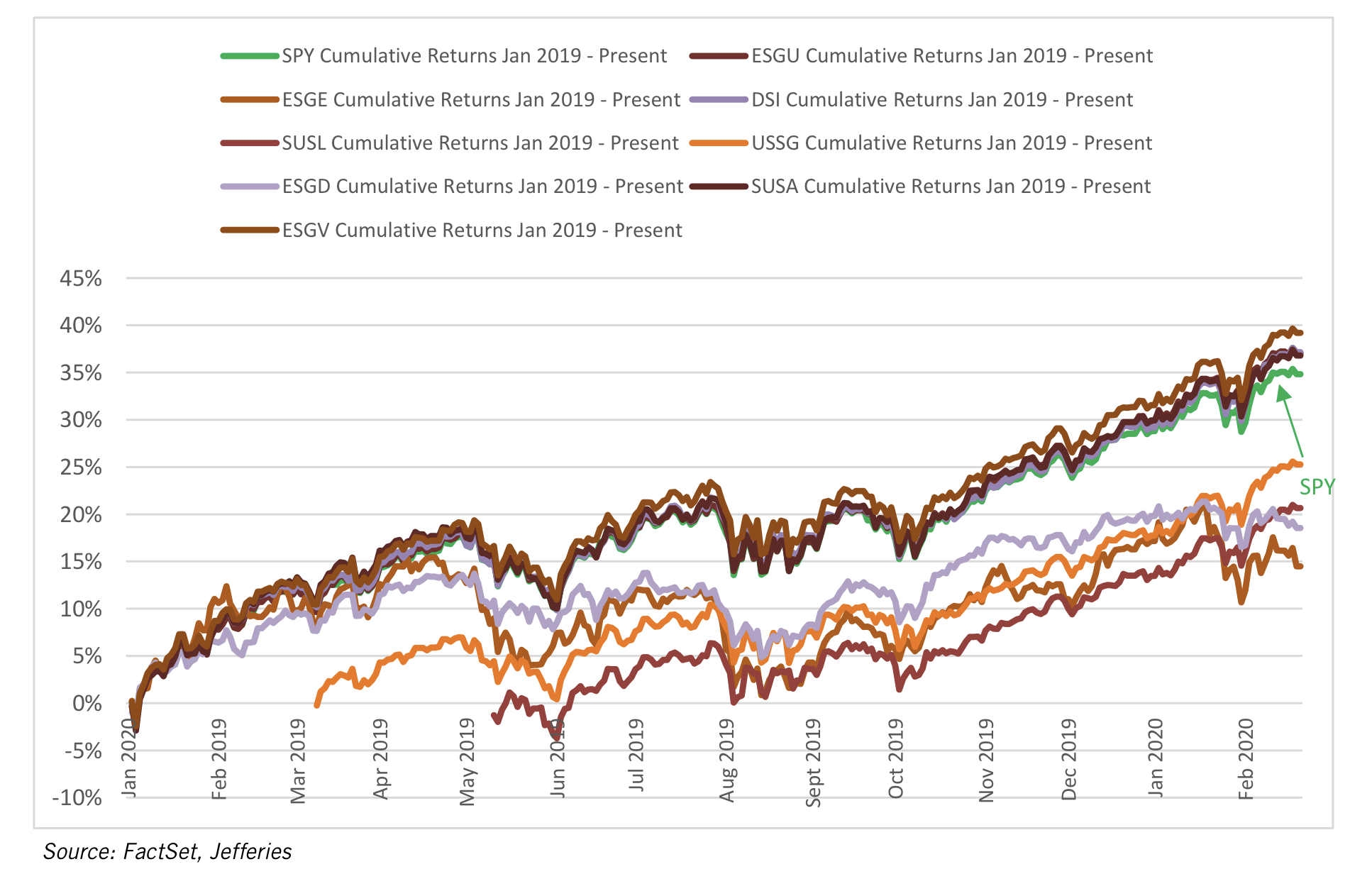 ESG funds — especially the top performing ones — beat the market. In 2019, a year when the S&P returned 30% and hedge funds had their best year in a decade, the four largest US ESG ETF’s outperformed both. If you want to make the argument that causation is not correlation, I’m all ears.