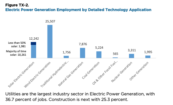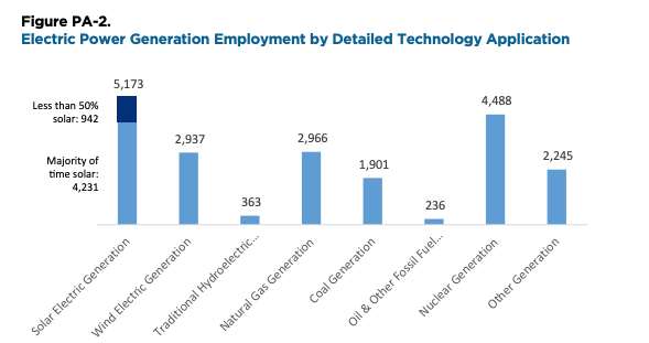 In case you missed it in the second chart, solar and wind jobs are more than 3x the numbers tied to natural gas when it comes to power generation alone.
